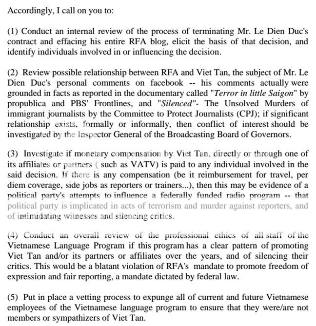 Thư Nguyễn Thanh Tú gởi ông Dan Southerland,